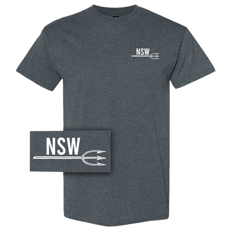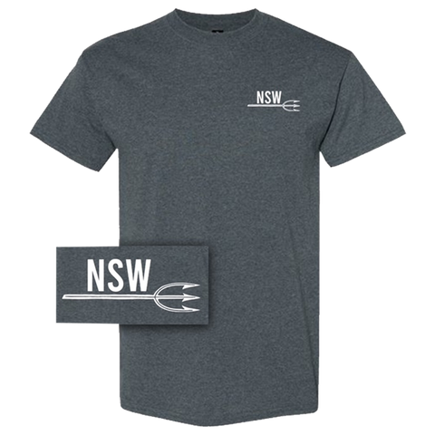 - Front Design: White NSW with Trident Spear Below on Left Chest