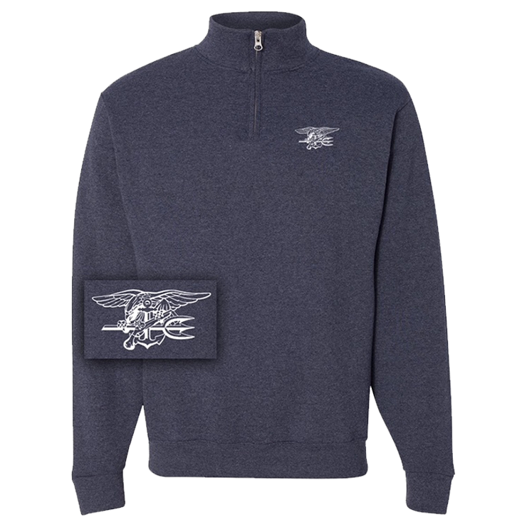 - Screenprint: White Navy SEAL Trident on Front Left Chest